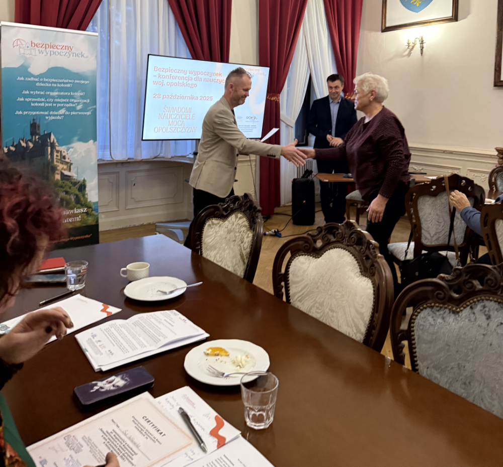 W ramach zadania przeprowadzono dwa szkolenia pod nazwą "Bezpieczny Wypoczynek" w Zamku Moszna - 21 i 28 października 2025 r. Wzięło w nich udział 40 nauczycieli szkół podstawowych i ponadpodstawowych z całej Opolszczyzny. Spotkania łączyły teorię, praktykę i wymianę doświadczeń.