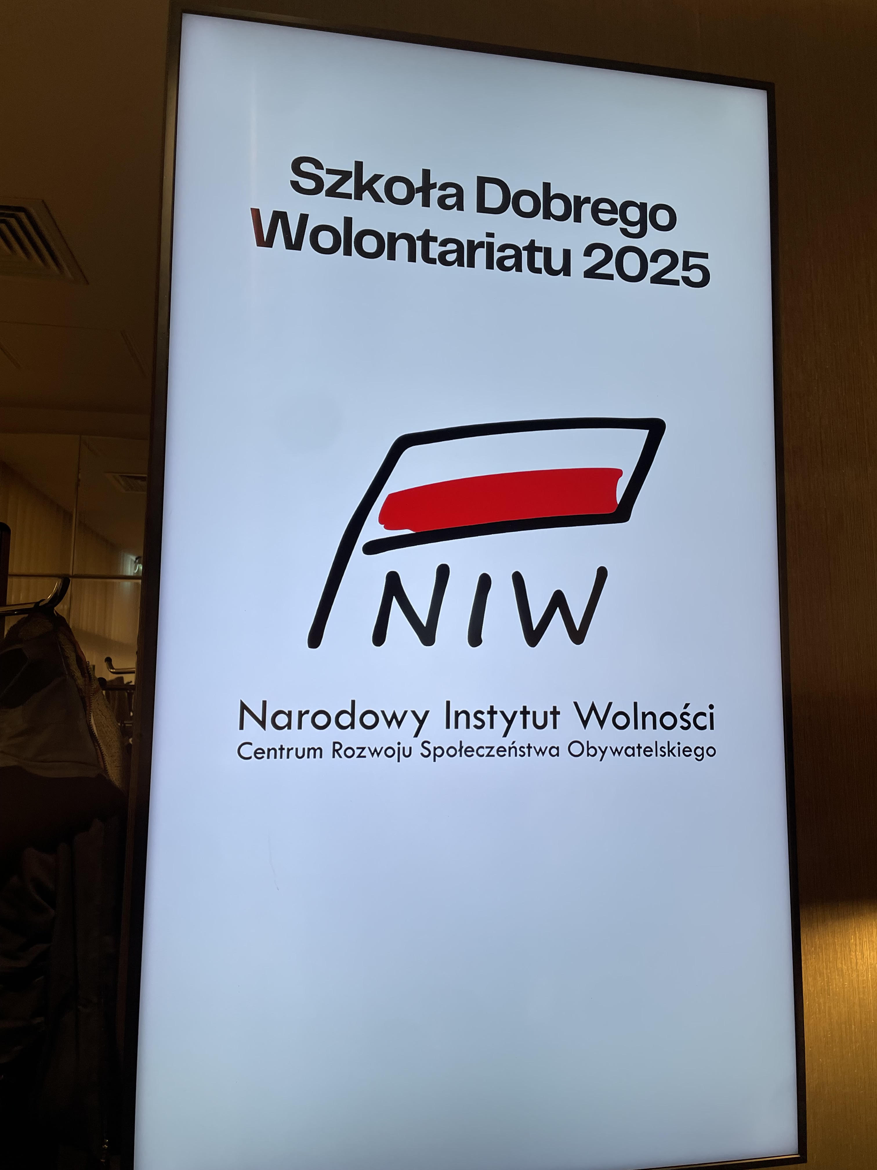 W listopadzie 2025 roku nasz koordynator wolontariatu, Paulina Jędrzejak-Bartela, wzięła udział w Szkole Dobrego Wolontariatu 2025, organizowanej przez Narodowy Instytut Wolności. Trzydniowy program obejmował m.in. zagadnienia z zakresu prawa w wolontariacie, koordynacji zespołów, pracy z wolontariuszami, komunikacji oraz partycypacji w NGO. Szkoła była pełna praktycznych warsztatów, inspirujących prelekcji i sesji networkingowych, które umożliwiły wymianę doświadczeń z ekspertami i praktykami III sektora.